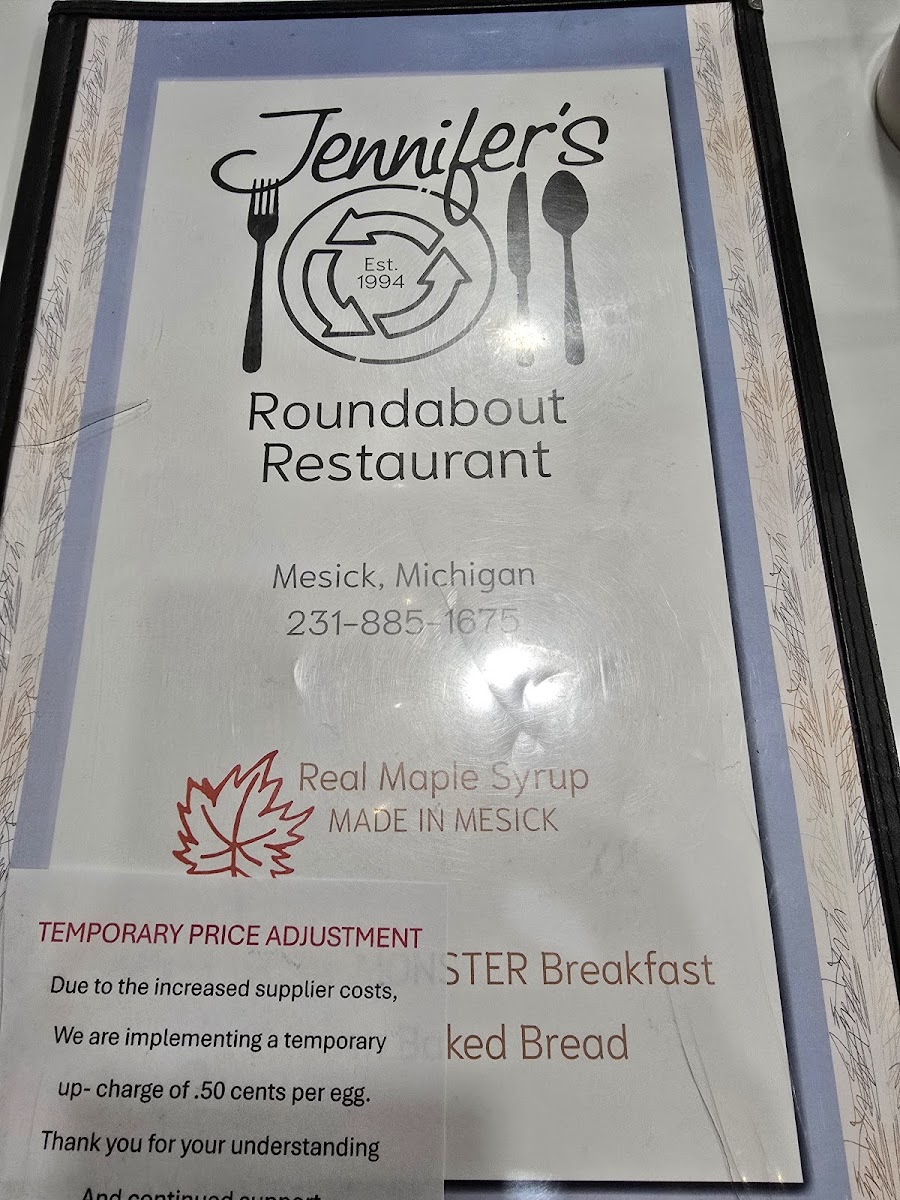 Welcome to Jennifer's Roundabout Restaurant, a delightful spot nestled in Mesick, Michigan. This charming eatery is celebrated for its dedication to homemade dishes crafted from the heart. With offerings such as country fried steak and corned beef hash, each plate is a testament to the care and attention invested in every recipe.